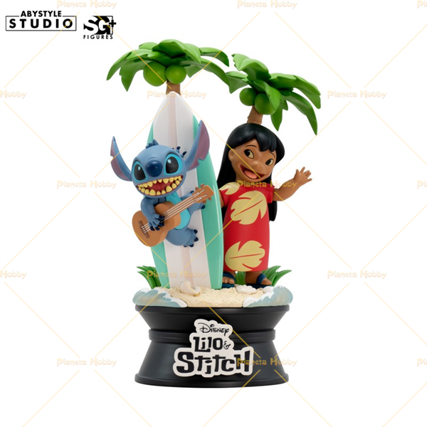 Lilo e Stitch faranno scalpore nella nuova gamma SG+ di ABYstyle Studio! Circondato da un arredamento di ispirazione hawaiana, Stitch qui si aggrappa a una tavola da surf, mentre tiene in mano il suo ukulele preferito. Lilo, dal canto suo, è riconoscibile dal suo abito tradizionale e saluta tutti i fan di questo iconico film d'animazione Disney con un “aloha”. Action figure alta 17cm , scatola nuova e sigillata