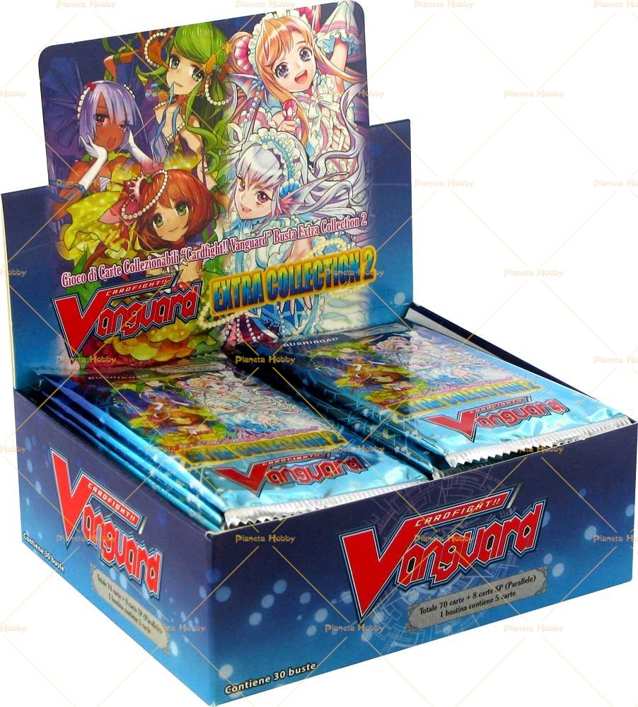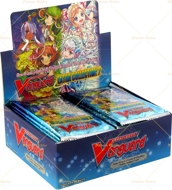 Box di 30 Bustine in italiano, ogni busta contiene 5 carte di cui 1 carta è sicuramente Rara. Dopo il successo del volume 1 di Extra Collection, la seconda espansione di questo filone propone in tutto il loro splendore le carte del Triangolo delle Bermuda, clan che finalmente vedremo imporsi nei campi da gioco grazie a questo super set. Nuove abilita' e nuove star vi stupiranno con una esplosione di colori, portando a termine lo spettacolo delle Idol.