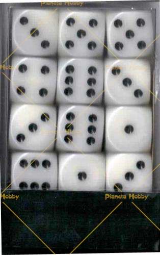 Confezione con 36 dadi a 6 facce di 12mm come da figura..