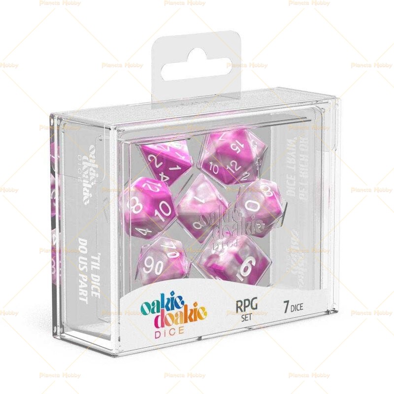 Set di dadi da gioco a molteplici facce. La scatola contiene 7 pezzi