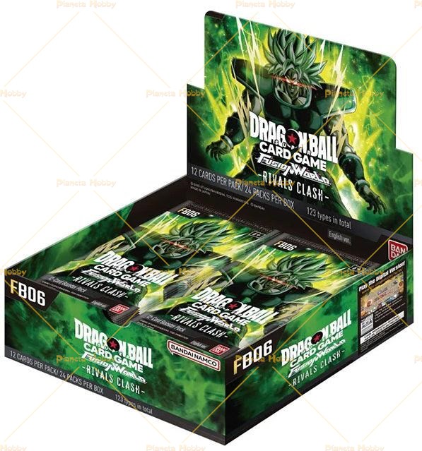 Box di Dragon Ball Super Fusion World contiene 24 buste dell'espansione. Ogni busta contiene 12 cart..