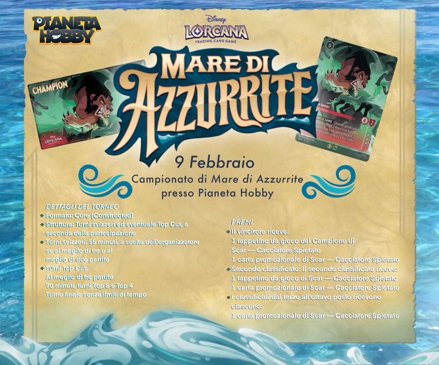 Benvenuti da Pianeta Hobby per il quarto evento competitivo ufficiale di Lorcana: Mare di Azzurrite Championship!