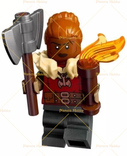 Un personaggio da assemblare, gli accessori e un foglietto che illustra la serie e le istruzioni per il montaggio.