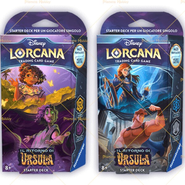 Per giocare a Disney Lorcana TCG, ogni giocatore ha bisogno di un mazzo di 60 carte. Gli starter deck pronti per il gioco contengono un mazzo precostituito con una specifica lista di carte. Se siete alle prime armi con i giochi di carte collezionabili o se volete provare il gioco con un mazzo progettato e testato dal Team Lorcana, questo è un buon punto di partenza.
