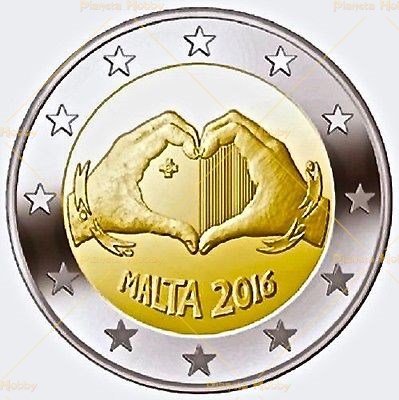 2 Euro 2016 di Malta. 1° moneta dedicata all' "amore". Tiratura: 350,000