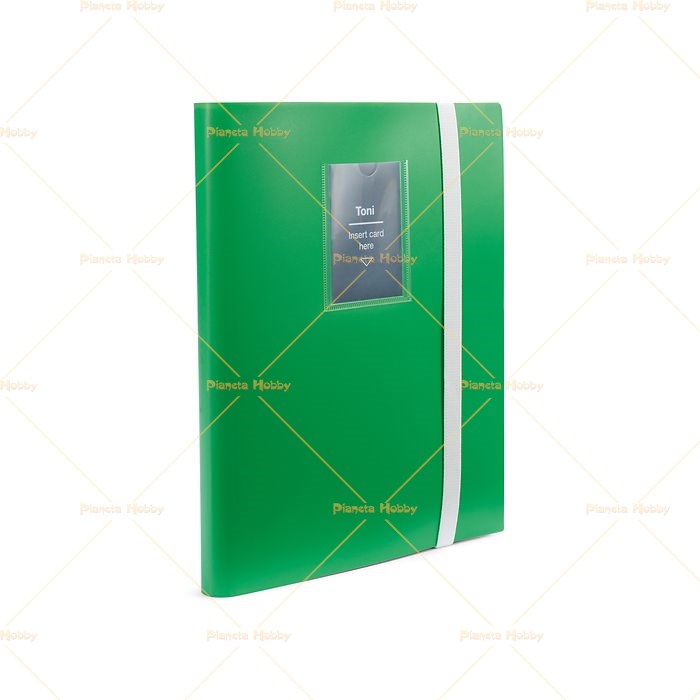 L'album offre spazio per un massimo di 360 carte collezionabili e quindi spazio sufficiente per presentare e proteggere la tua preziosa collezione. La tasca con finestra (66 x 90 mm) perfettamente integrata nella copertina, ti consente di personalizzare l'album con una trading card a tua scelta, adatta per una card standard con o senza busta interna. La copertura flessibile garantisce allo stesso tempo una facile maneggevolezza e una presa salda. La chiusura sicura con elastico fornisce alle tue carte collezionabili la protezione necessaria e impedisce possibili scivolamenti, sia a casa che in viaggio. Con un formato esterno di 250 x 305 x 25 mm e 20 fogli saldamente rilegati, ciascuno con 9 scomparti (formato interno per scomparto 70 x 95 mm), puoi sempre tenere traccia delle tue figurine con Toni. Gli interfogli neri presenti su ogni foglio creano uno sfondo gradevole e una separazione visiva. È incluso un set di adesivi con bandiere nazionali e anni per personalizzare la tua collezione. L'album è perfetto per tutte le carte popolari come Bundesliga Match Attax, Champions League Match Attax, Match Attax Extra, Topps EURO 2024 Match Attax, Panini Top Class, Panini World Class o Panini Prizm Premier League.