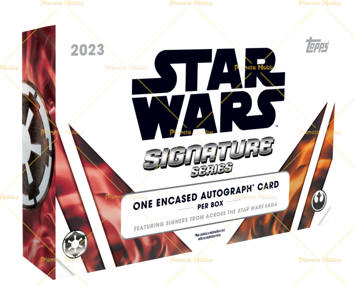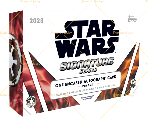 Topps Star Wars Signature Series ritorna con un prodotto premium per i collezionisti di autografi! Ogni box di Star Wars Signature Series contiene 1 Autografo in lastra, preso da una lunga lista di autografi! Cerca le "Design Variations" degli autografi e la novità di quest'anno, le carte autografate "The Light Side-Dark Side Quad"! Inoltre, cerca la carta autografata speciale del 1983 e le carte parallele numerate a #40 per commemorare il 40° anniversario de "Il Ritorno Dello Jedi"!