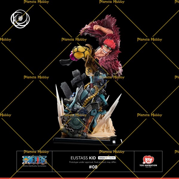 Questa statua è un'interpretazione dell'episodio " Il sogno dei guerrieri! La conquista di Rufy di Udon! " dall'arco narrativo di Wano Country . Dopo che i prigionieri di Udon trovano finalmente il coraggio di ribellarsi all'ingiusto giogo di Kaido e Orochi, ritengono un pirata come Rufy inaffidabile, mentre Eustass Captain Kid rifiuta la sua offerta di unirsi alla lotta contro Kaido. Dopo averlo liberato dalle sue catene, lasceranno Udon insieme, grazie al potere devastante del suo Frutto del Diavolo! Vediamo quindi la potente e minacciosa Supernovae della Peggiore Generazione, con le sue smorfie labbra rosso sangue e il suo sguardo oscuro e arrabbiato attraversato dalle sue cicatrici a forma di fulmine entrare in azione! Usando le abilità del suo Jiki Jiki no Mi , trasforma il suo braccio paralizzato dopo il suo scontro con la Testa Rossa in una vera e propria arma di distruzione di massa! Mentre i prigionieri osservano i detriti metallici levitare intorno a loro, lo spietato Capitano dei Pirati Kid li attira a sé per costruirsi un braccio meccanico indistruttibile e gigantesco, composto da ingranaggi, catene, tubi e innumerevoli e imponenti parti metalliche! Gettando la sua pelliccia dai colori sgargianti che rivela le ferite sul suo torso muscoloso, il pugno buono serrato, scagliò il suo possente pugno meccanico Punk Gibson contro le spesse sbarre del cancello della prigione di Udon, facendolo schiantare violentemente, come dimostrano gli effetti di schianto in resina trasparente o la polvere che si solleva improvvisamente dal terreno. Se Kid condivide lo stesso sogno di Rufy, intende raggiungere il suo obiettivo a modo suo: usando il suo pugno di ferro per distruggere ogni ostacolo, determinato a polverizzare i limiti stessi dell'impossibile! MISURE: 22 X 36 X 43 CM