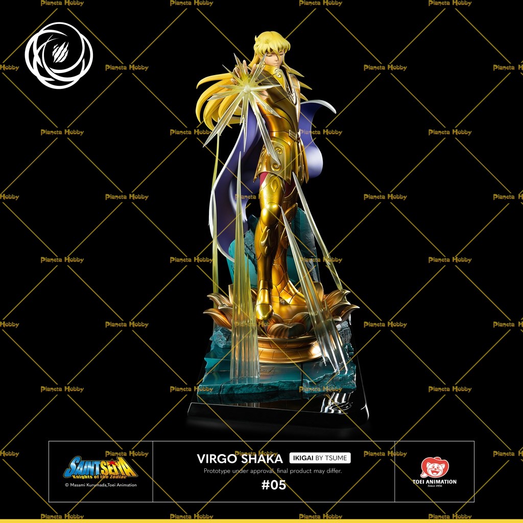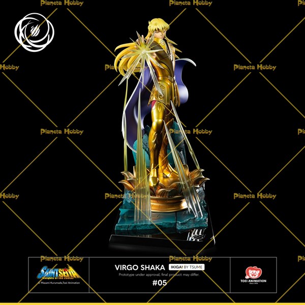 Questa statua di Shaka della Vergine è un'interpretazione degli episodi "Shaka, l'uomo più vicino a Dio" e "Paura del vuoto! Shaka apre gli occhi" dall'arco narrativo del Santuario . Quando i tre Cavalieri dello Zodiaco, Shiryū, Seiya e Shun, arrivano al Tempio della Fanciulla , trovano Shaka che riposa sul suo Loto d'oro, pronto ad accoglierli degnamente. Mentre il loro ospite li sconfigge in un batter d'occhio e si prepara a finire Shun a sangue freddo, suo fratello Ikki appare e ingaggia un vero e proprio tiro alla fune con il suo avversario. Dopo un feroce combattimento illustrato dalla demolizione del pilastro del Tempio della Fanciulla, colui che afferma di essere la reincarnazione del Buddha dimostrerà che se la sua anima è di infinita purezza, anche la sua crudeltà è illimitata.