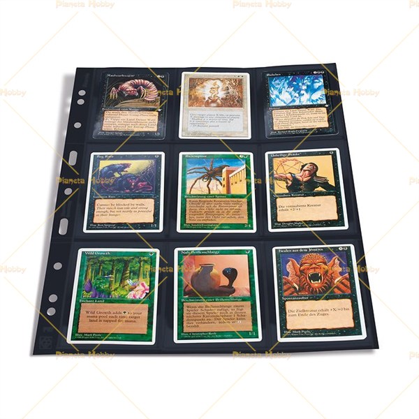 Fogli in PVC rigido extra resistenti NERI ( 100% senza plastificanti e senza acidi ). Confezione da 5 fogli a 9 tasche