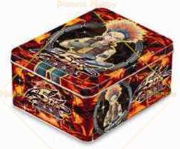 Ogni tin include:3 buste Duelist Pack Yusei, 1 busta Crisi Scarlatta, 1 busta con 3 carte metallizza..